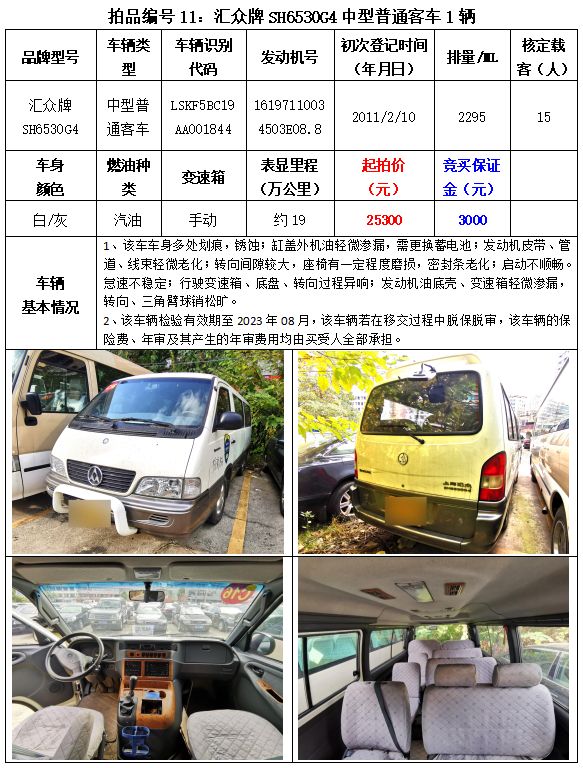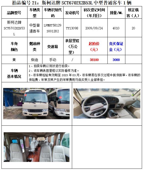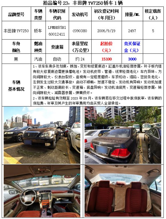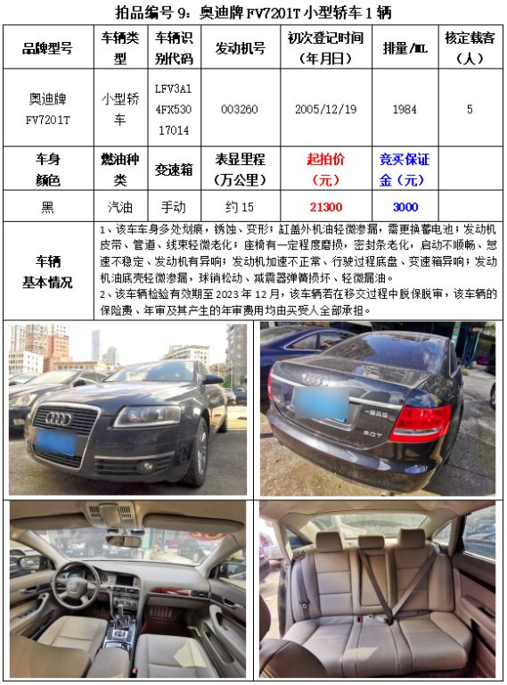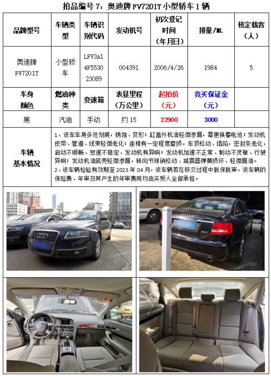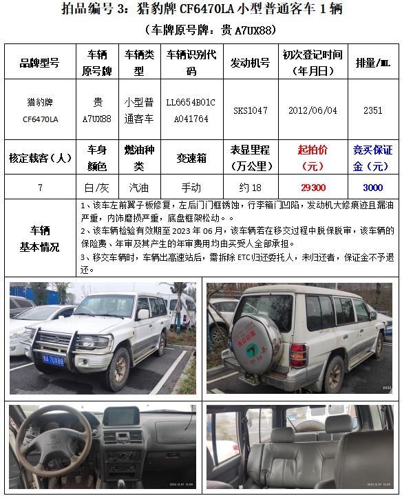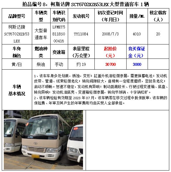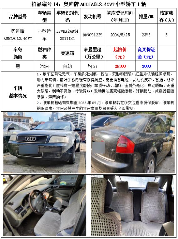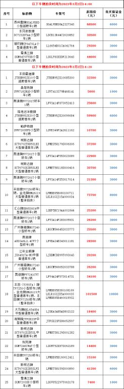 以下車輛拍賣時(shí)間為2023年3月2日14:20開(kāi)始