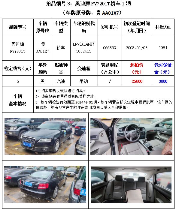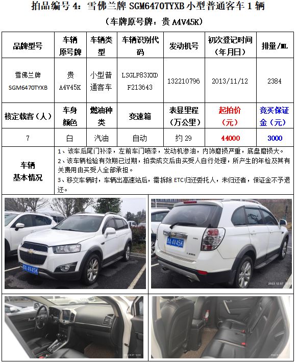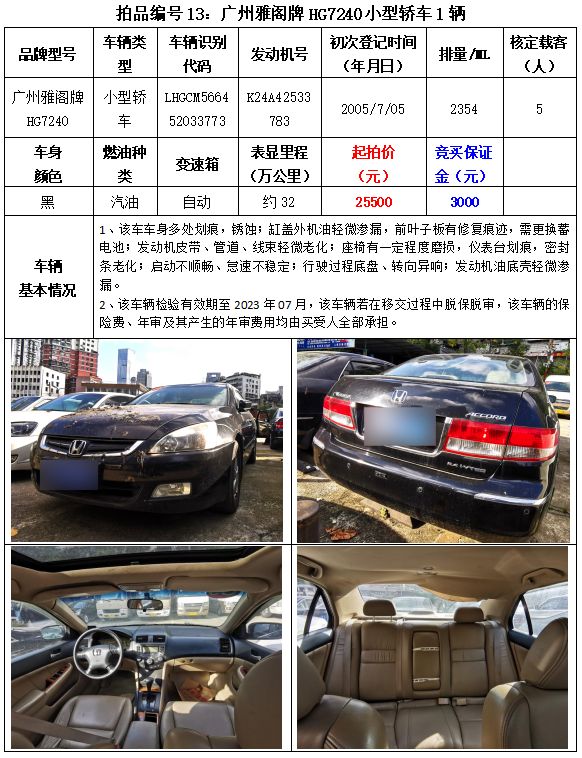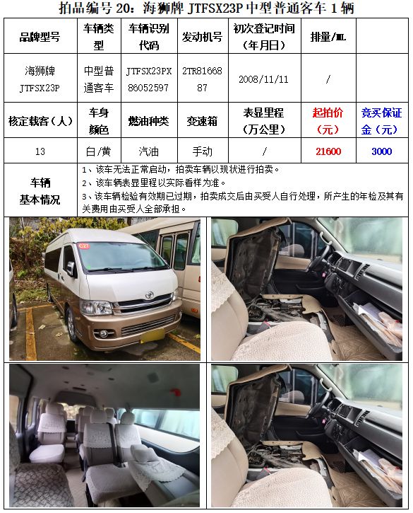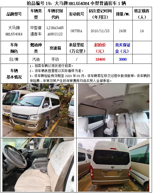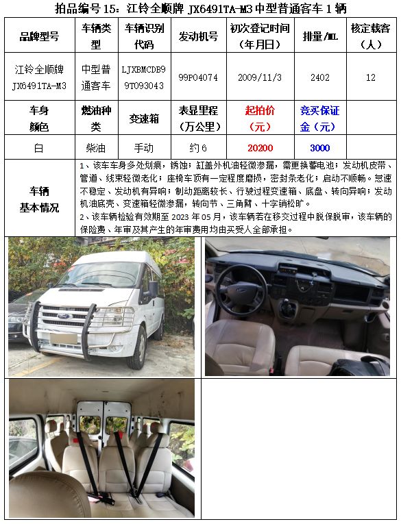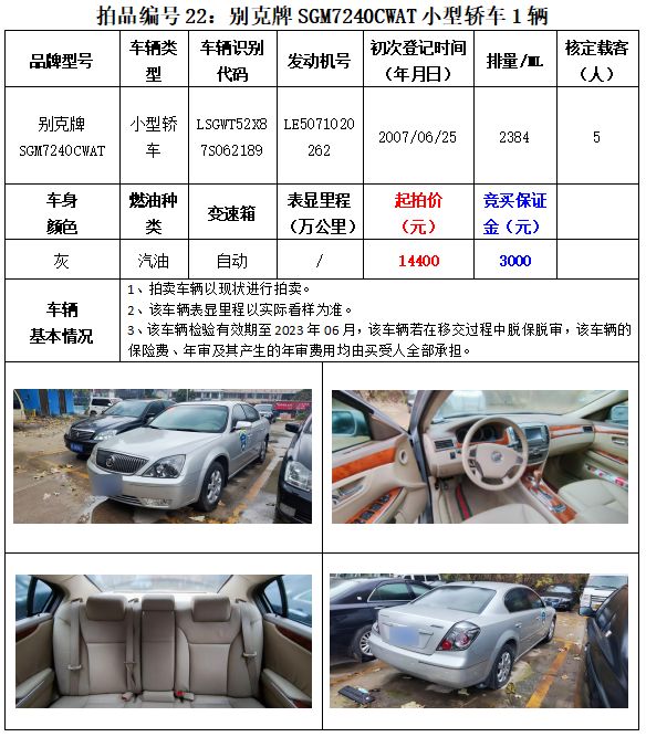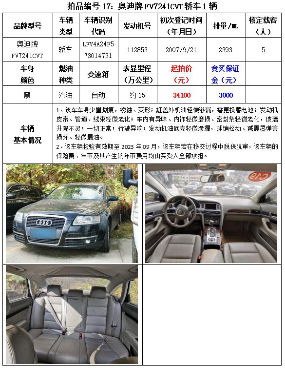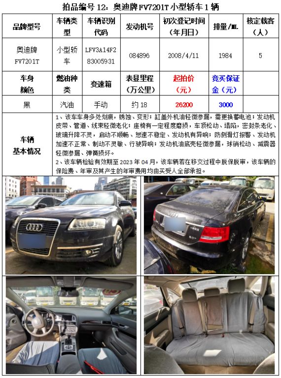 以下車輛拍賣時(shí)間為2023年3月2日14:20開(kāi)始
