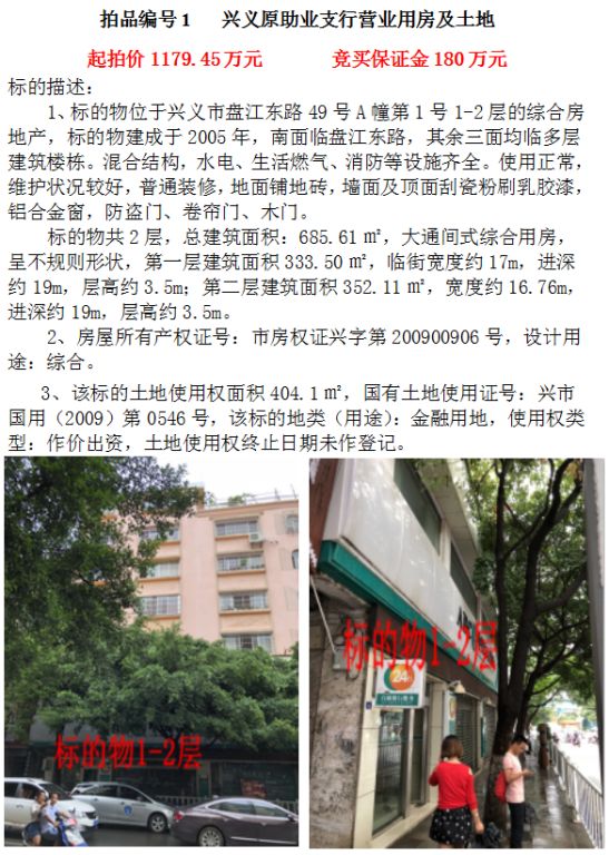 拍賣公告| 中國農業銀行黔西南分行資產拍賣