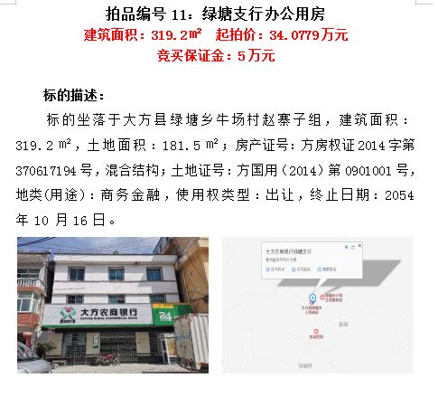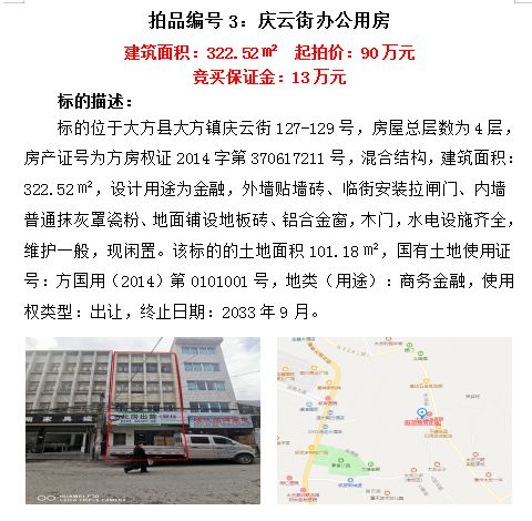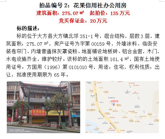 貴州省畢節市大方縣門面、房產、廠房、設備及土地拍賣公告