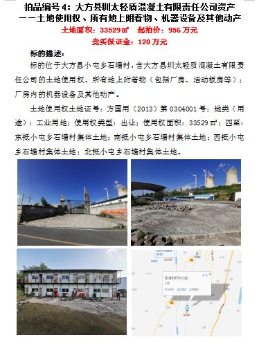 4、大方縣圳太輕質混凝土有限公司資產(土地面積為33529㎡);