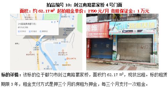 10、劍江南路蒙家橋門面(2間)3年租賃權(面積約62.17㎡/間);