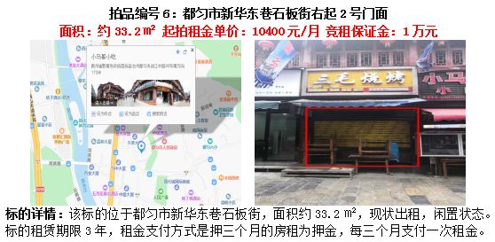 6、都勻市新華東巷石板街右起2號門面3年租賃權(面積約33.2㎡);