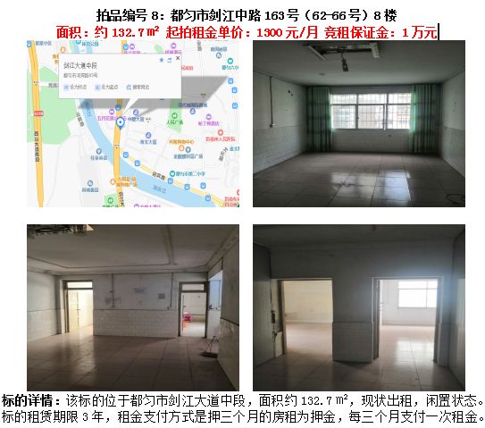 8、都勻市劍江中路163號(62-66號)8樓住房(右)3年租賃權(面積約132.7㎡);