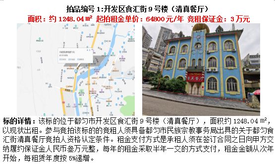 1、都勻市開發區食匯街9號樓(清真餐廳)5年租賃權(面積約1248.04㎡);