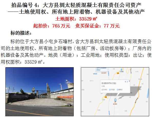 4、大方縣圳太輕質混凝土有限公司資產(土地面積為33529㎡);