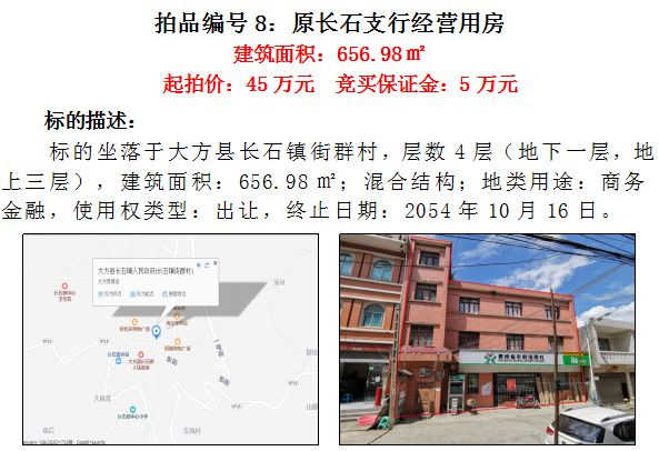 受委托,我公司定于2020年10月29日(星期四)下午14:30在大方縣九驛大道與迎賓大道交叉口瀾灣二區農商銀行3樓電教室公開拍賣以下標的: