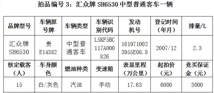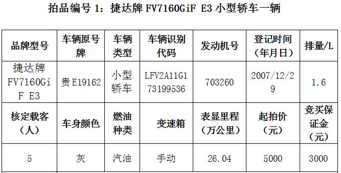 受委托,我公司定于2020年12月2日(星期三)下午14:30在貴州省黔西南州興義市瑞金南路45號(中國農業(yè)銀行黔西南分行科技樓四樓會議室)公開拍賣:捷達牌、雅閣牌、匯眾牌共計3輛車。