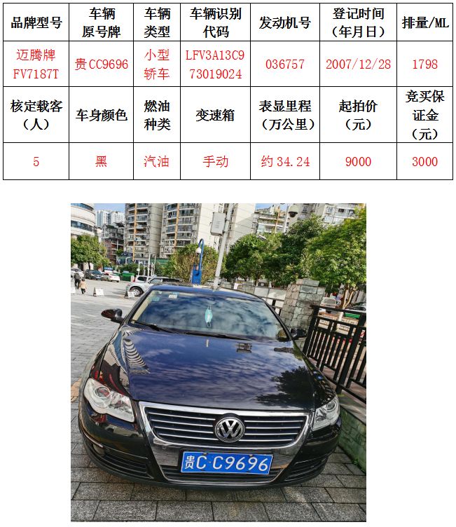 本次拍賣會的拍賣標(biāo)的(拍品編號1-5共計5輛車),分別為??怂古?、邁騰牌、帕薩特牌、別克牌、三菱牌,為打包整體拍賣,不作拆分,整體起拍價:85000元,且只對標(biāo)的現(xiàn)狀進(jìn)行拍賣,不作任何質(zhì)量擔(dān)保。