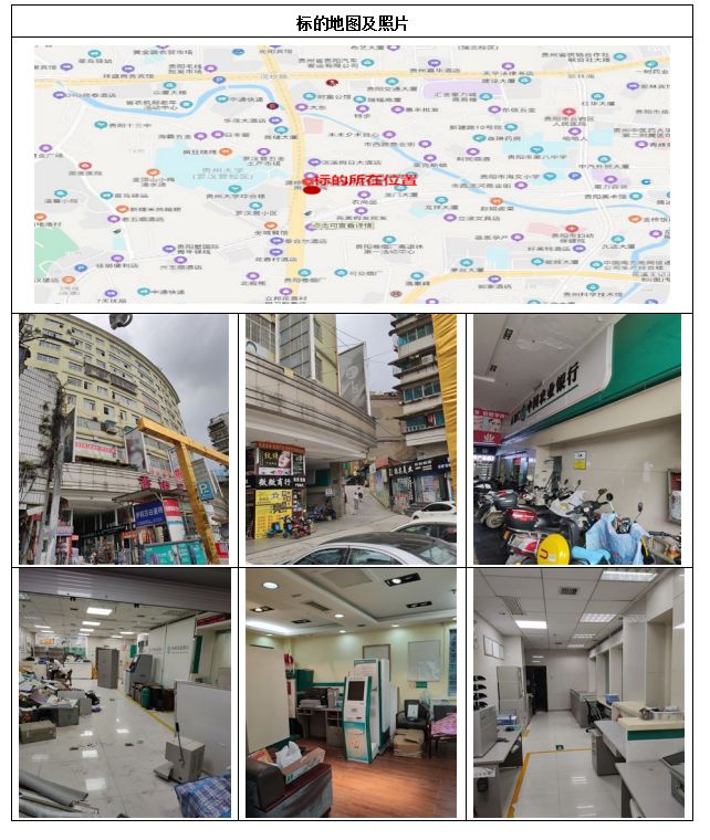 標的位于貴陽市云巖區香獅路198、196號新里程商城1號樓F1層203號;該標的分攤土地使用權面積:98.51㎡ ,總建筑面積:285.72㎡,樓宇總層數:9層,所在樓層:1層,地類用途:商業用地;土地使用權類型為出讓,土地使用權終止日期為:2053年10月23日,土地所有權為國家所有;建筑結構:混合結構;層高:3.3米,建筑用途為商住。