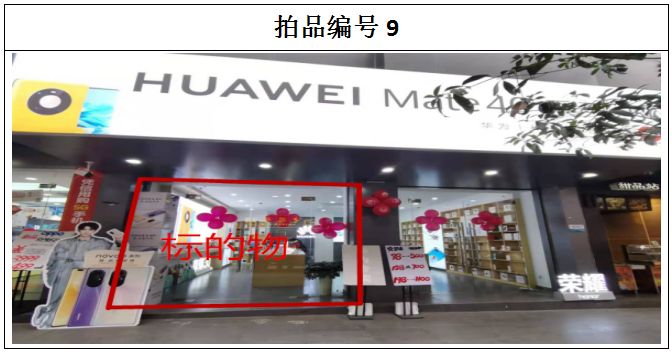 7、“華為5G”手機專賣店門面,面積:40.55㎡,租賃期:3年,起拍租金單價:108000元/年,競租保證金:40000元;