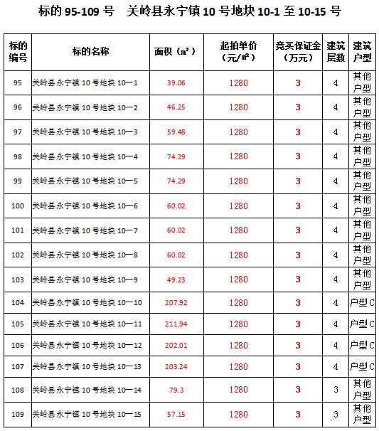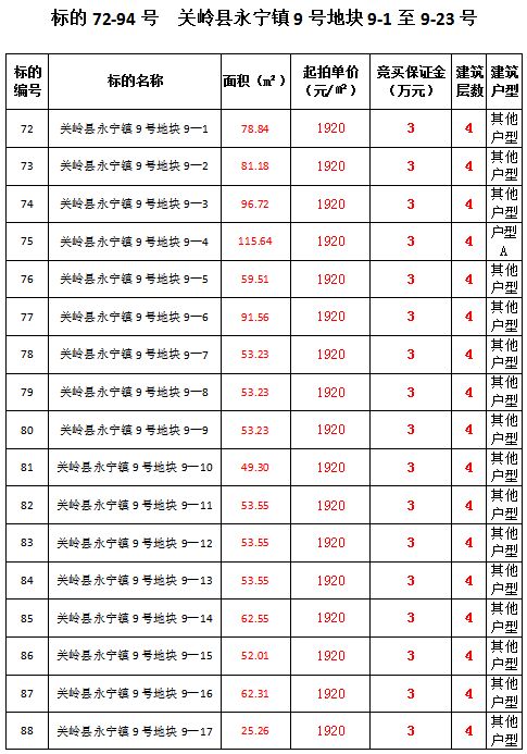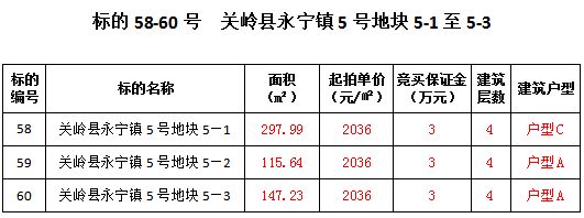 關嶺縣永寧鎮109宗宅基地,面積25.26—297.99㎡,起拍價717—2036元/㎡。