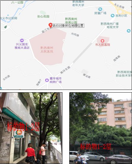 1、標(biāo)的物位于興義市盤江東路49號(hào)A幢第1號(hào)1-2層的綜合房地產(chǎn),標(biāo)的物建成于2005年,南面臨盤江東路,其余三面均臨多層建筑樓棟。混合結(jié)構(gòu),水電、生活燃?xì)狻⑾赖仍O(shè)施齊全。使用正常,維護(hù)狀況較好,普通裝修,地面鋪地磚,墻面及頂面刮瓷粉刷乳膠漆,鋁合金窗,防盜門、卷簾門、木門。