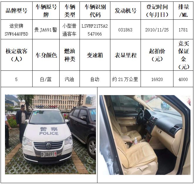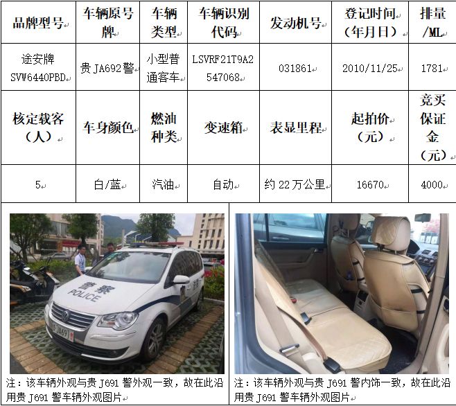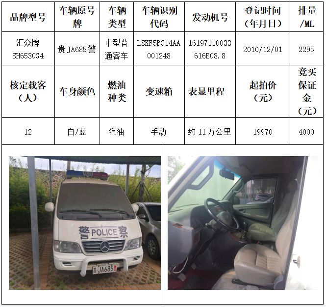 受委托,本公司定于2021年5月12日(星期三)下午14:30時,在羅甸縣龍坪鎮河濱路紅水河投資有限責任公司二樓會議室公開拍賣:途安牌小型普通客車2輛,起亞牌小型普通客車1輛,匯眾牌中型普通客車1輛,共計4輛車。