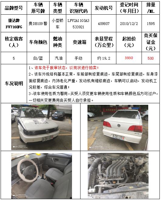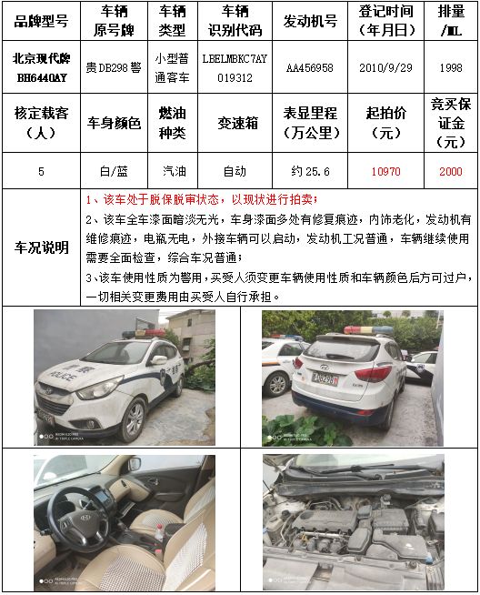 受委托,本公司定于2021年9月16日(星期四)下午14:30時,在銅仁市碧江區川硐教育園區誠信路銅仁市公共資源交易中心開標六室(拍賣大廳)公開拍賣以下車輛: