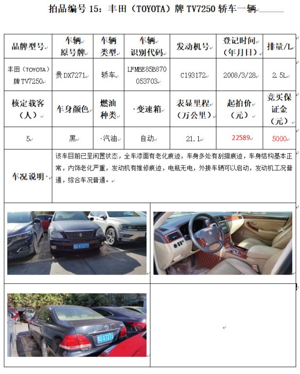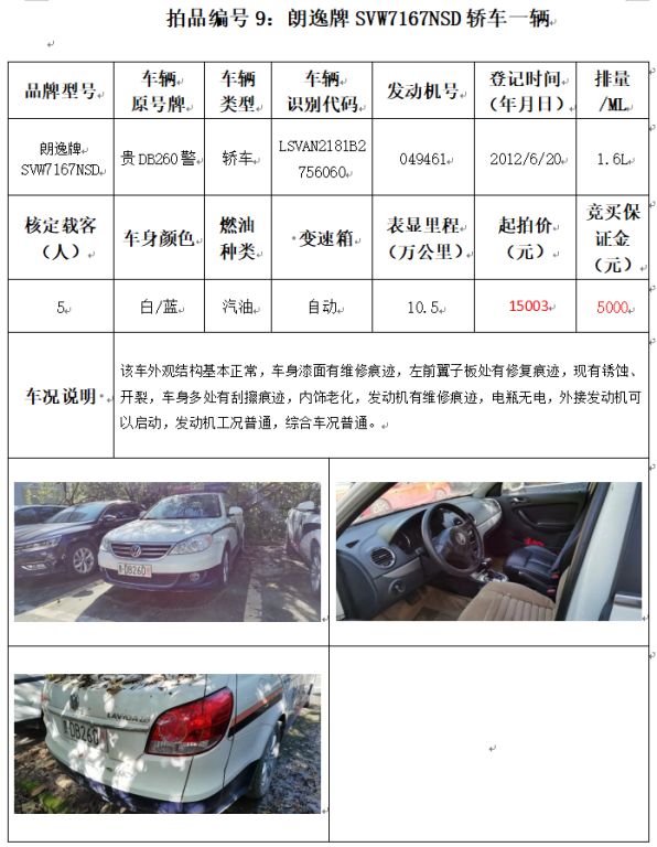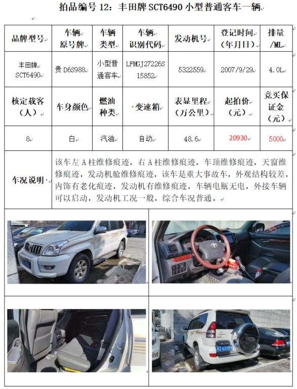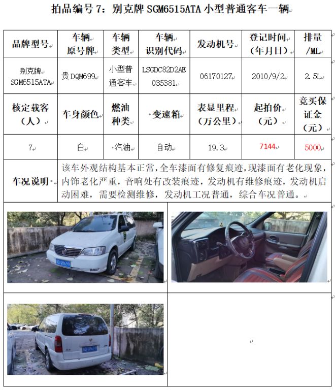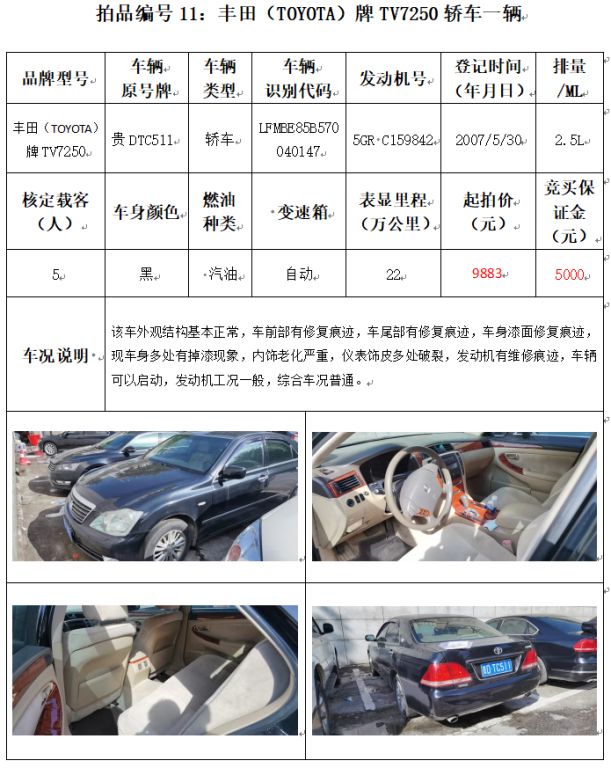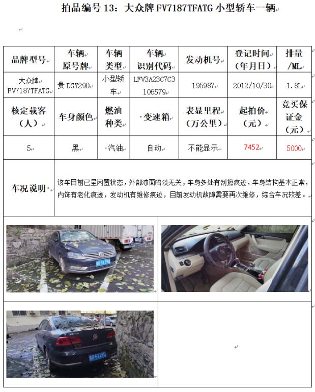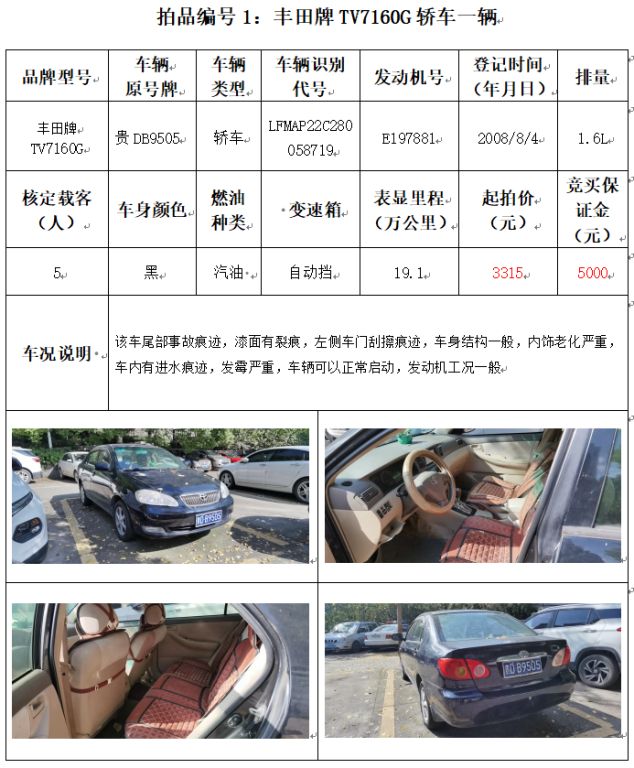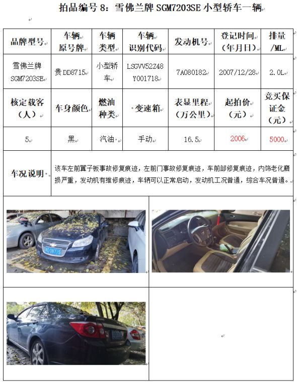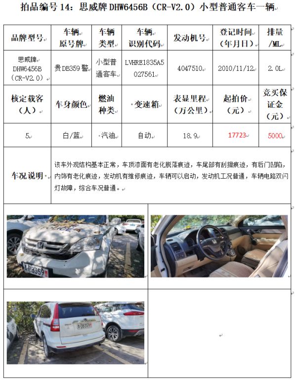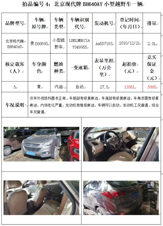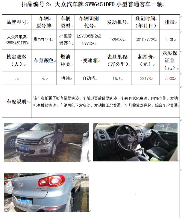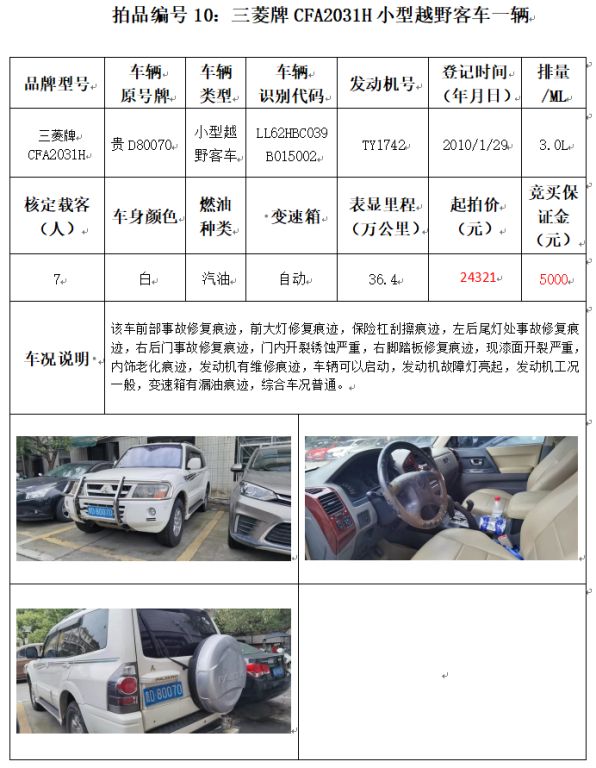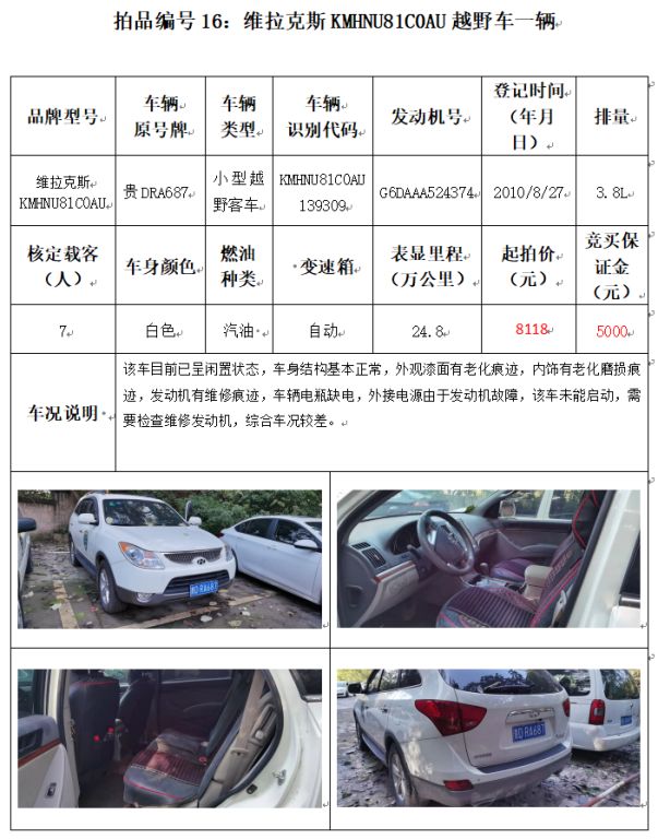 受委托,本公司定于2021年12月10日(星期五)下午14:00時,在銅仁市碧江區川硐教育園區誠信路銅仁市公共資源交易中心開標六室(拍賣大廳)公開拍賣以下車輛:
