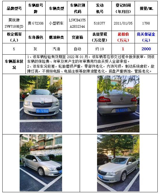 受委托,我公司定于2021年12月9日(星期四)下午14:30在安順市西秀區黃果樹大街345號黔中大廈安順農行三樓會議室公開拍賣以下標的: