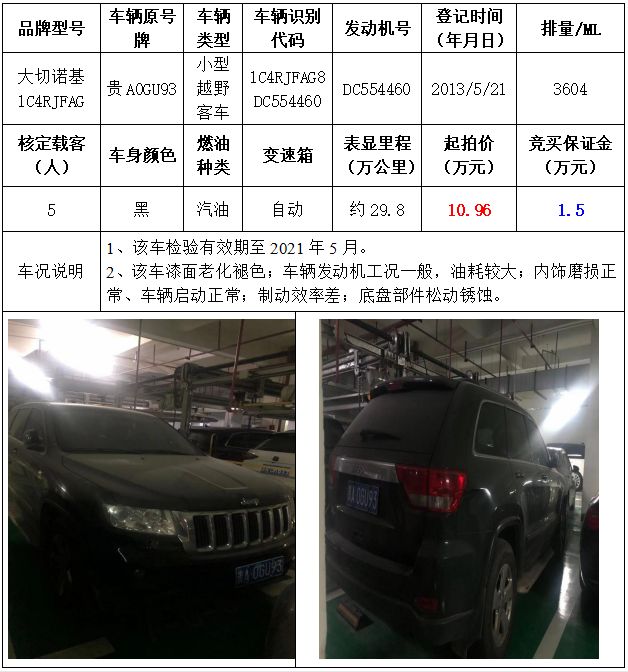 拍品編號1:大切諾基1C4RJFAG小型越野客車一輛
