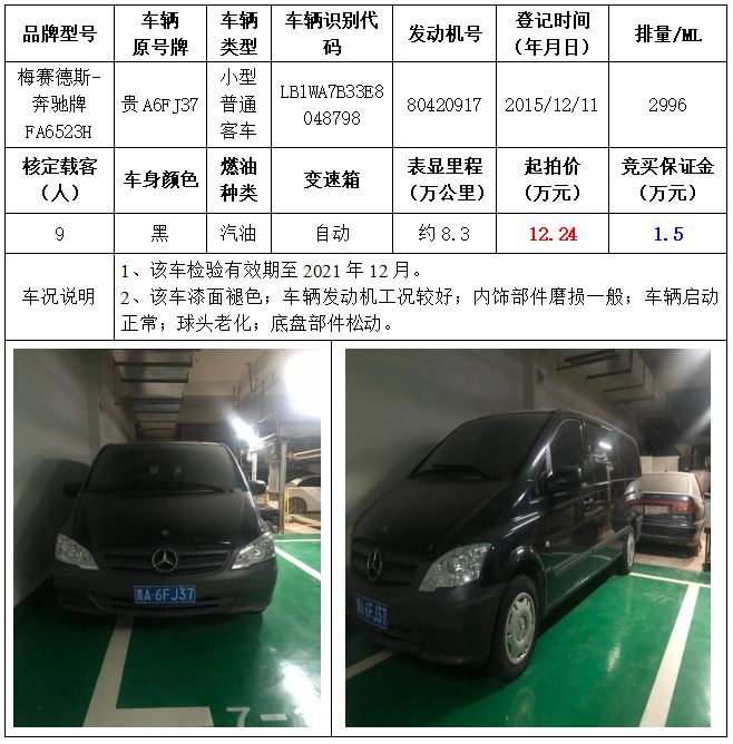 拍品編號2:梅賽德斯-奔馳牌FA6523H小型普通客車一輛