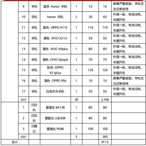 拍品編號1:手機、麻將機、打印機一批(整體拍賣)