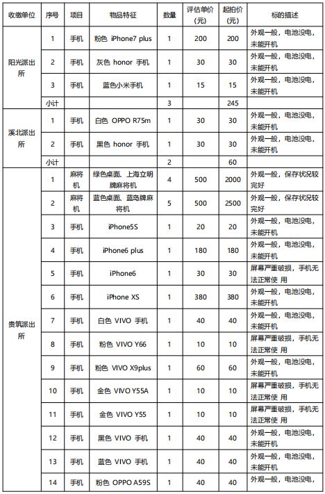 【已結束】貴陽市公安局花溪分局罰沒物資拍賣公告