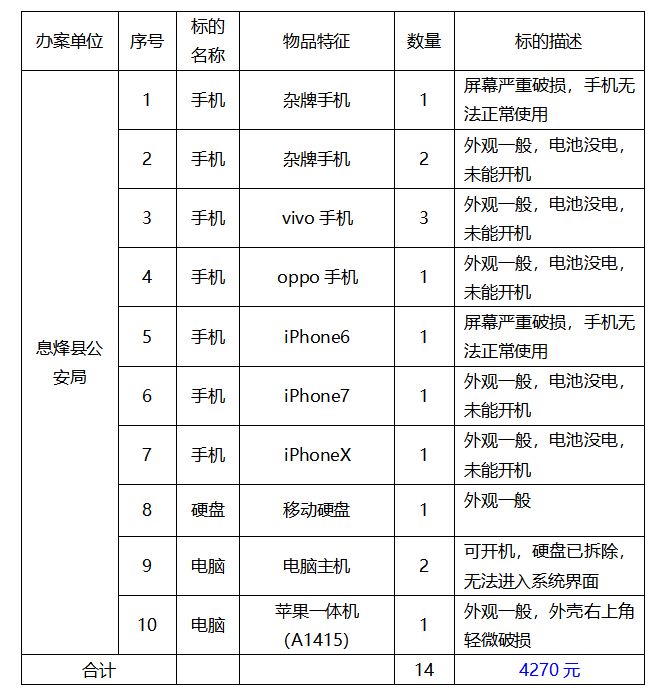 該批標的包含各類品牌手機10部;電腦主機2臺;蘋果一體機1臺;移動硬盤1個。