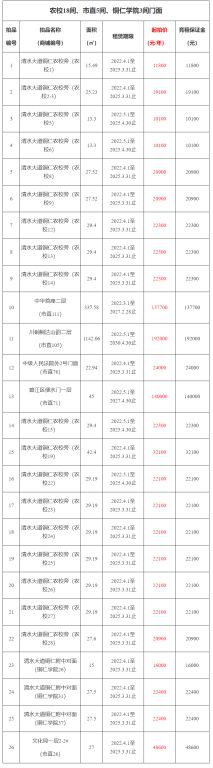 18、清水大道銅仁農校旁(商鋪編號:農校24),面積:29.19㎡,租賃期:3年,起拍價:22100元/年,競租保證金:22100元;