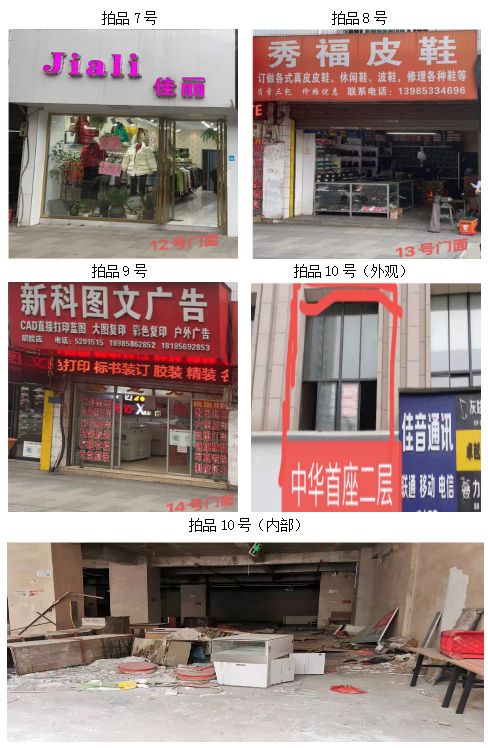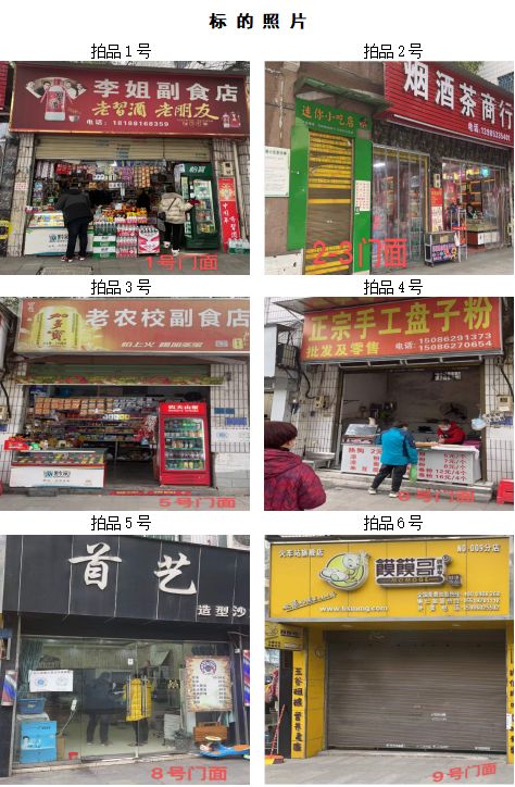 拍品1至9號標的:位于清水大道銅仁農校旁,地理位置優越,屬于黃金大道。附近有大專、中學、小學、幼兒園等,教學配套齊全;擁有眾多小區,人口流動能力強,固定人口較多;周圍有超市、商場,人口流動性強。地理位置優越,屬于臨街門店,升值空間較大;地區基礎設施完善,公共交通、公共停車設施的增加,使該地升值空間進一步增大;建筑結構:磚混,面積:13.3㎡至29.4㎡不等(具體面積見上表),租賃期3年(具體日期見上表),保養情況:較好。