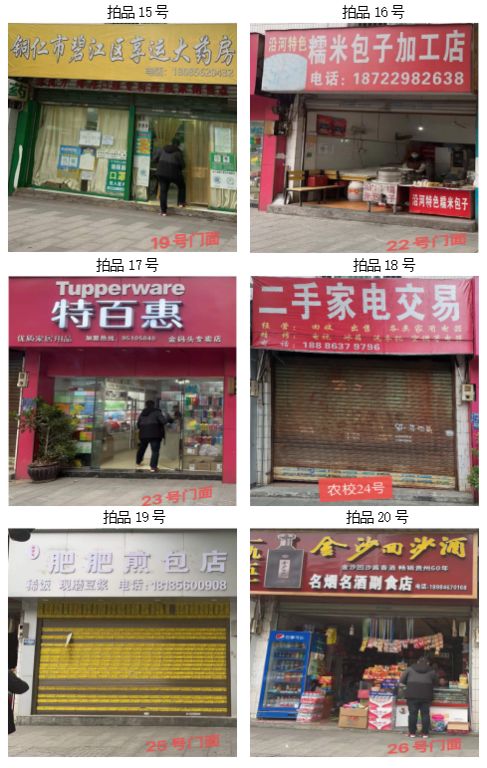 拍品23號標的:清水大道銅仁附中對面(銅仁學院26),面積:15㎡,租賃期3年(2022年4月1日至2025年3月31日止),附近有車站、醫院、銀行、酒店、超市、學校等,交通便利,人流量大。