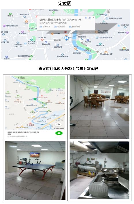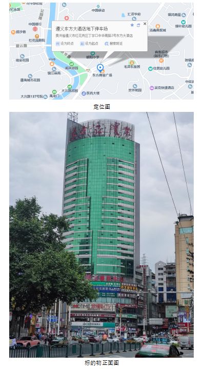 (1)標的位于遵義市大興路,地下室、2層、5層位于碧天大廈內,車庫位于碧興商住樓負一層。距丁字口約850米,距撈沙巷約200米,地處遵義市繁華地段,周邊有學校、醫院、商場等,商業氛圍濃厚,交通便利。