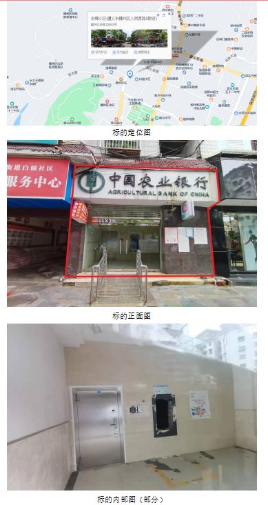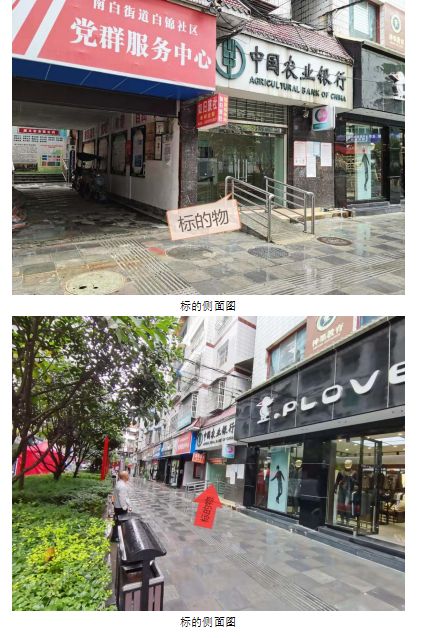 (1)該標的位于遵義市播州區南白鎮白錦小區二期三段,地處南白鎮中心地段,南面臨白錦小區街道,其余三面臨其他物業地塊,周邊商業氛圍濃厚,交通便利,水、電設施齊全。