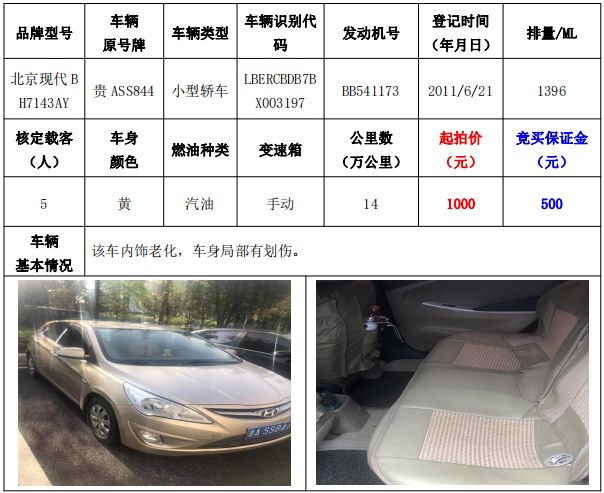 拍品編號(hào)2:北京現(xiàn)代BH7143AY小型轎車(chē)