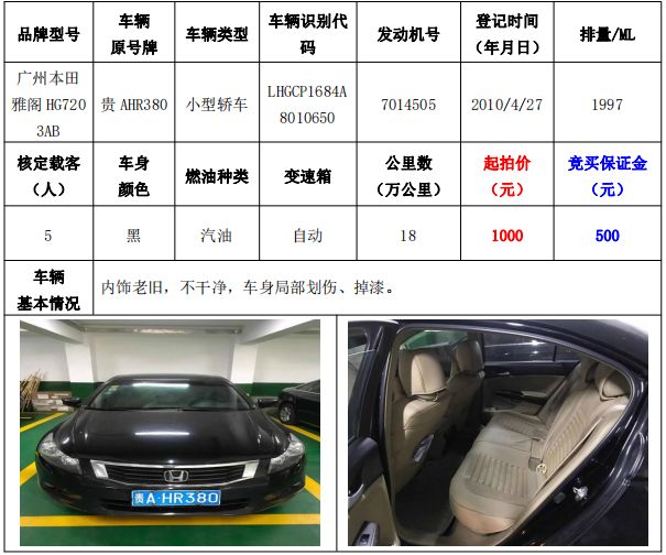 拍品編號(hào)3:廣州本田雅閣HG7203AB小型轎車(chē)
