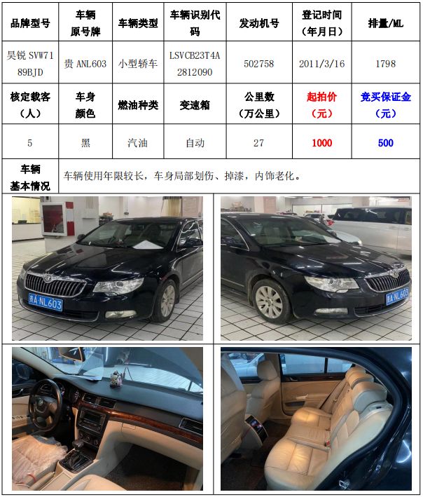 拍品編號(hào)4:昊銳SVW7189BJD小型轎車(chē)