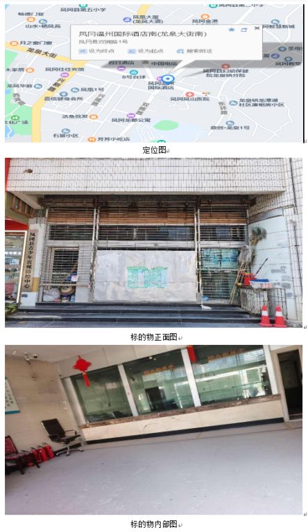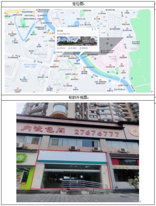 1、標的位于貴州省遵義市匯川區洗馬路康海世紀花城美倫花鄉A、B棟1層3號,東臨洗馬路,南臨新舟路,其余兩面臨其他物業地塊;周邊商業氛圍濃重,交通便利,水、電設施齊全。標的按照銀行營業點進行過簡單裝修。