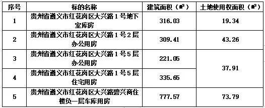 【已結束】遵義市主城區、桐梓縣、湄潭縣、習水縣、鳳岡縣商業用房拍賣公告