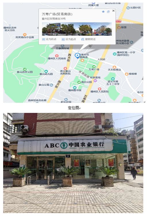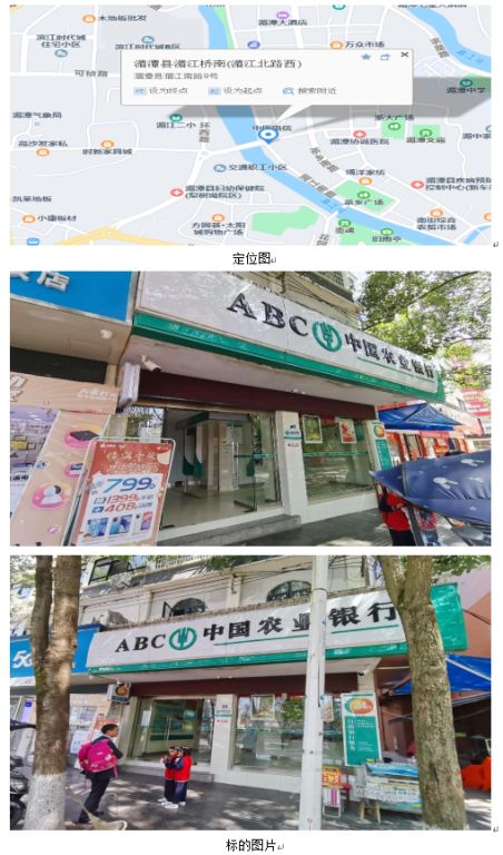 1、標的坐落于貴州省遵義市湄潭縣湄江鎮湄江南路,房屋建筑面積分別為:62.3㎡、12.15㎡,為臨湄江南路的營業用房,臨街寬度約7m,進深約11.6m;房屋總層數為6層,標的所在層數為1層,層高約3m;規劃用途:商業用房/其他用房;建筑結構:混合結構,目前用作經營“農行ATM自助銀行”。