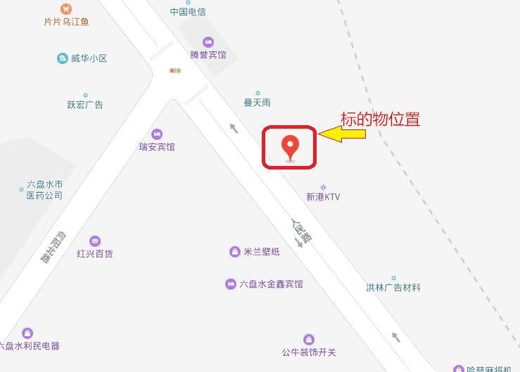 標(biāo)的位于六盤水市鐘山區(qū)人民西路66號1-7號的商業(yè)房地產(chǎn),西至紅巖村公房,南至人民西路,其余兩面臨建筑樓棟。標(biāo)的建筑面積253.44㎡,證載用途:商業(yè)。