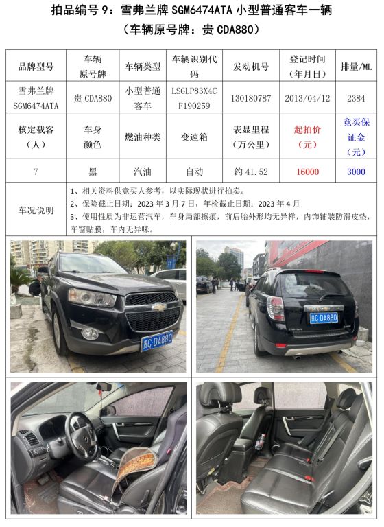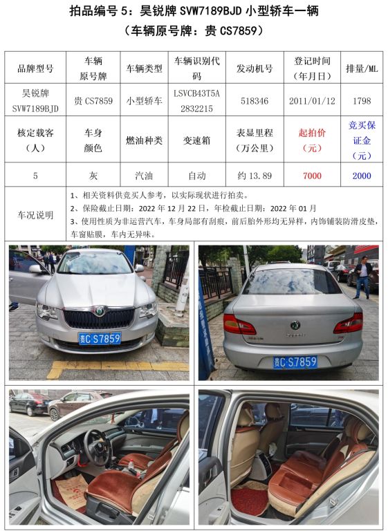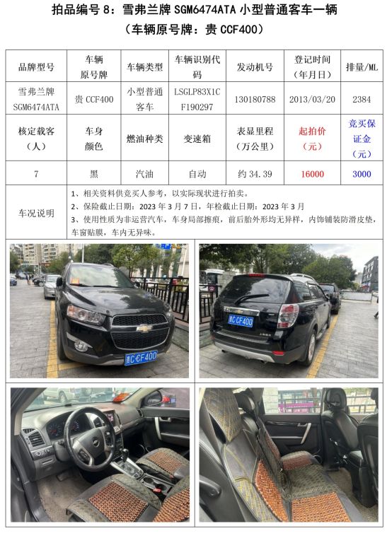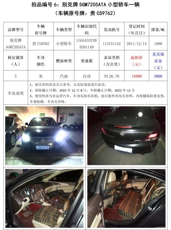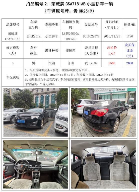 受委托,我公司定于2022年11月22日(星期二)下午14:30在中拍平臺(https://paimai.caa123.org.cn/)及貴州省遵義市匯川區廈門路13號中國農業銀行遵義分行16樓會議室采用網絡與現場同步拍賣方式公開拍賣以下標的: