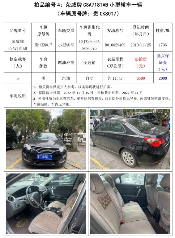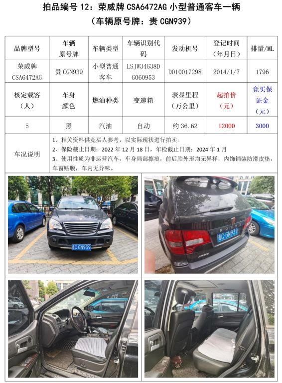 【已結束】中國農業銀行股份有限公司遵義分行機動車拍賣公告