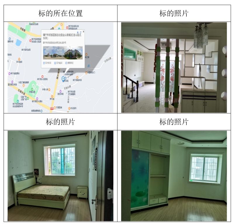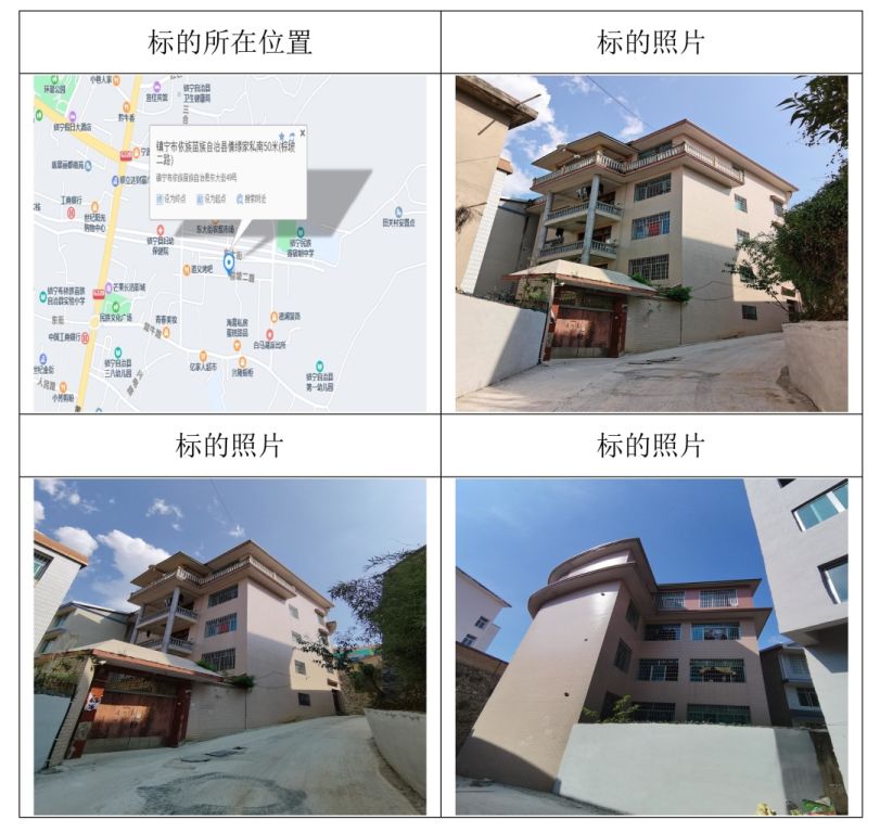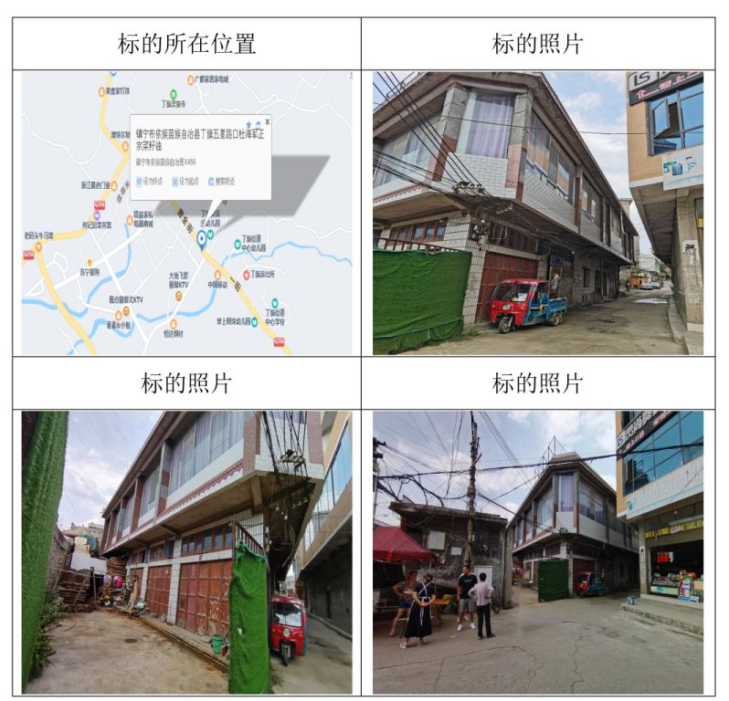 該標(biāo)的位于鎮(zhèn)寧布依族苗族自治縣丁旗五星路口,屬于自建房,建筑面積為約為518.42㎡,建成年限為2005年,建筑結(jié)構(gòu)為混合結(jié)構(gòu),房屋總樓層數(shù)為兩層,房屋所在樓層為1-2層,設(shè)計(jì)用途為住宅。