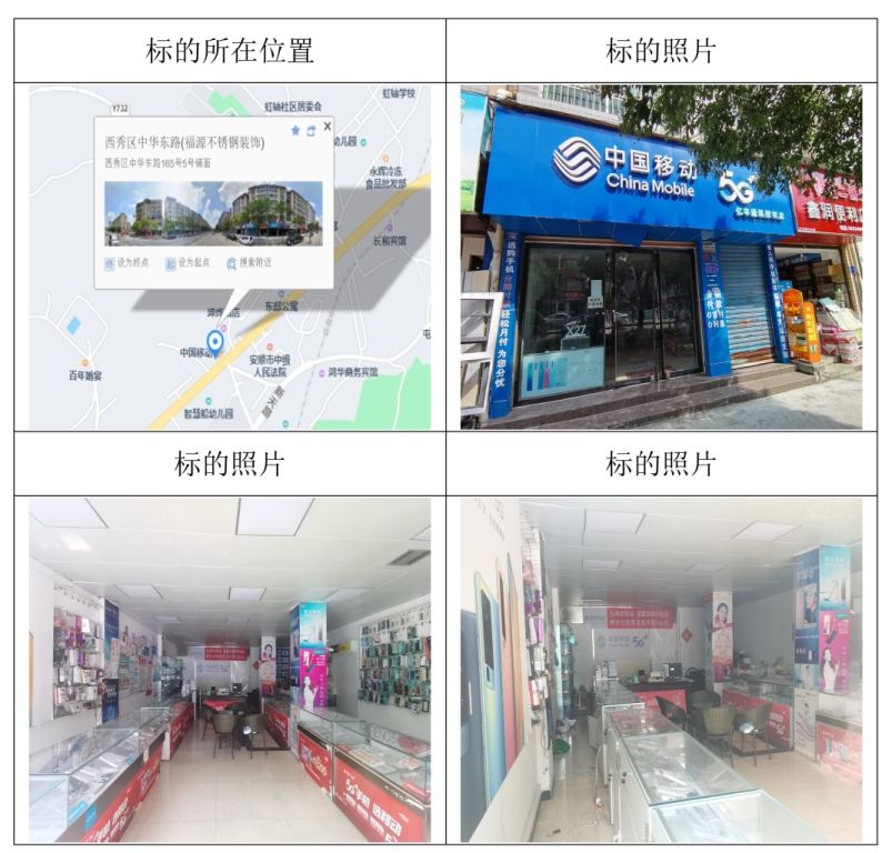 標(biāo)的位于西秀區(qū)中華東路,門面吊頂高約2.6米,門頭寬約5.9米,徑深約13米。建筑面積約為84.28㎡,建成年限為2005年,建筑結(jié)構(gòu)為混合結(jié)構(gòu),設(shè)計(jì)用途為商業(yè)。