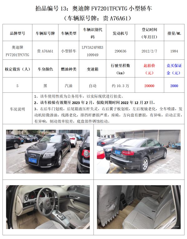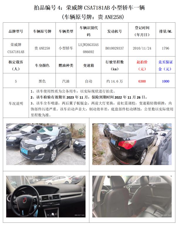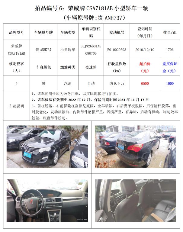 受委托,我公司定于2022年12月16日(星期五)下午14:30在貴州省貴陽市中華南路20號新大陸數碼廣場10樓D座會議室公開拍賣以下標的: