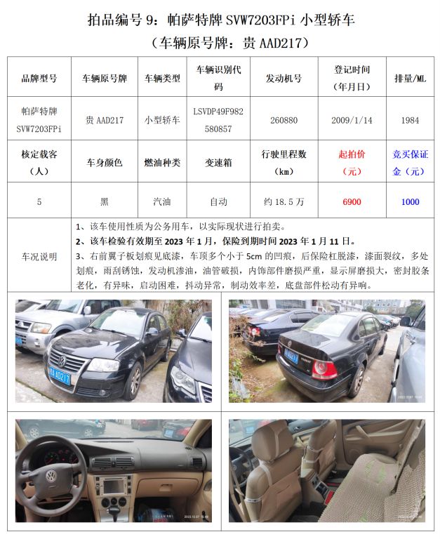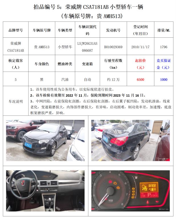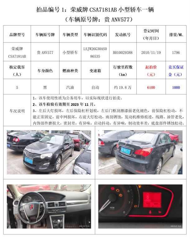 【已結束】貴陽市15輛機動車拍賣公告