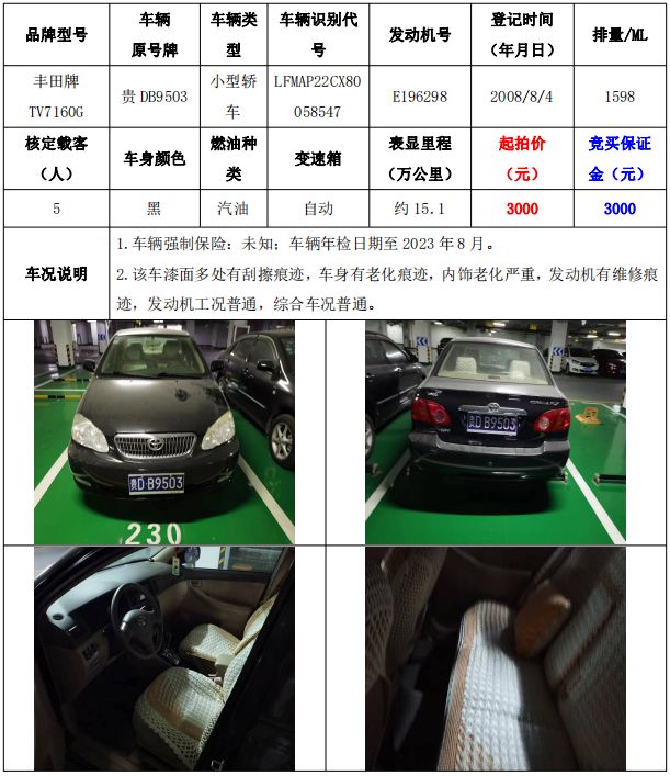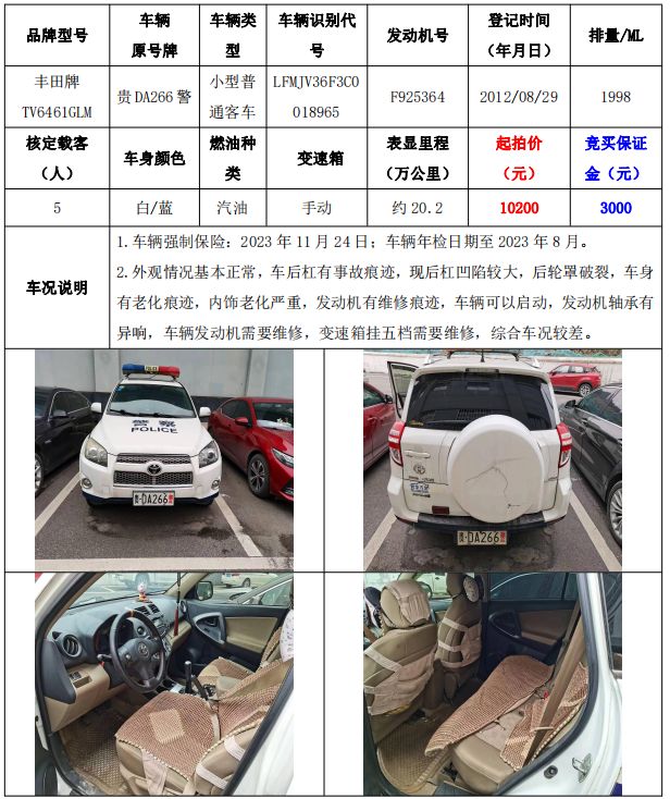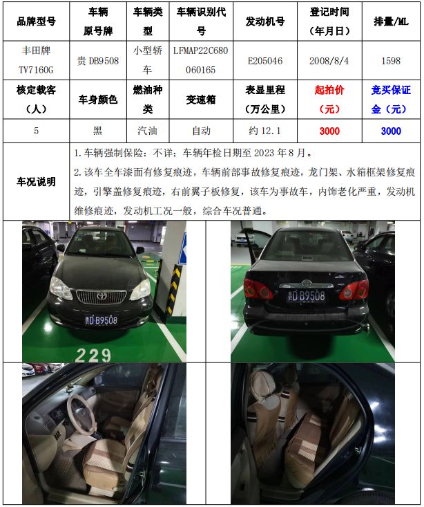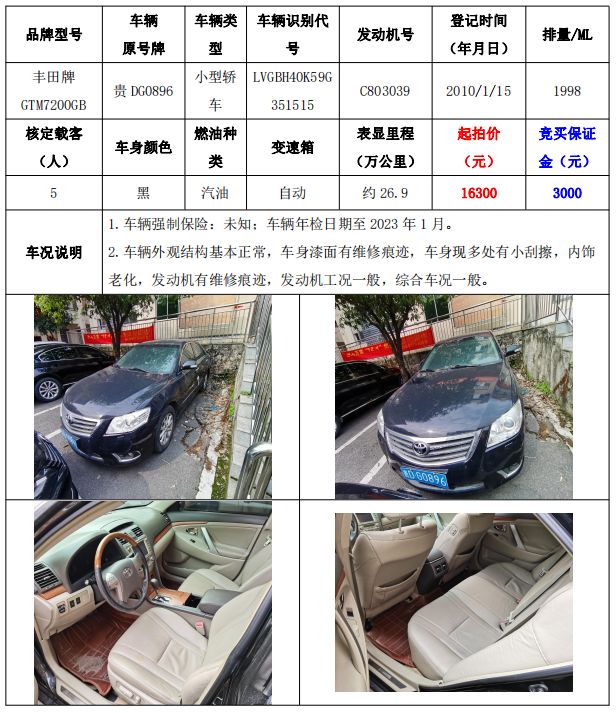 拍品編號16:豐田牌TV6461GLM小型普通客車一輛