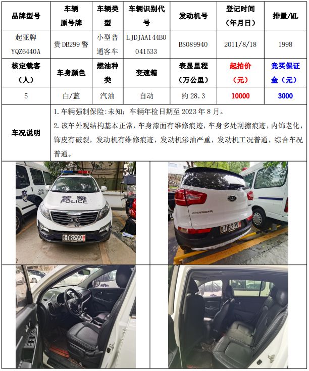 拍品編號15:起亞牌YQZ6440A小型普通客車一輛