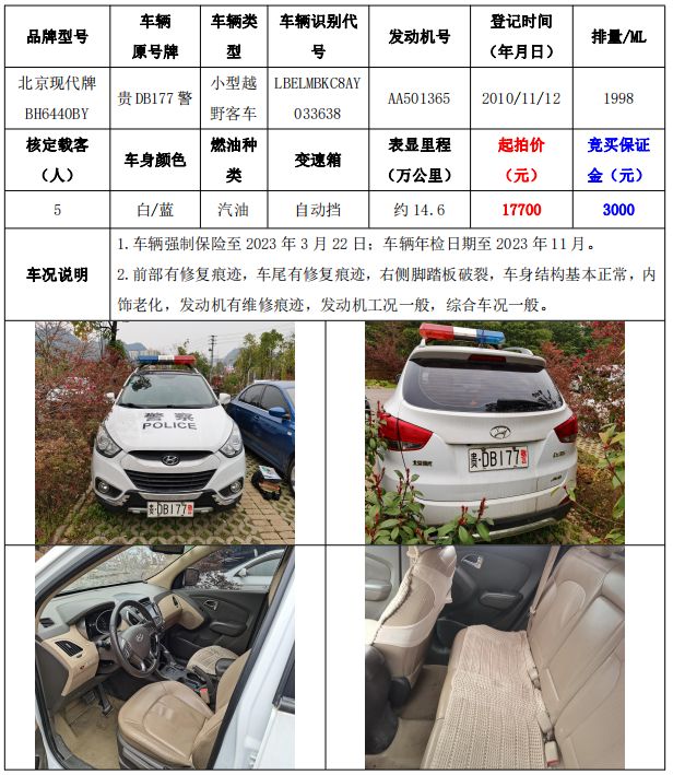 拍品編號14:北京現代牌BH6440BY小型越野客車一輛