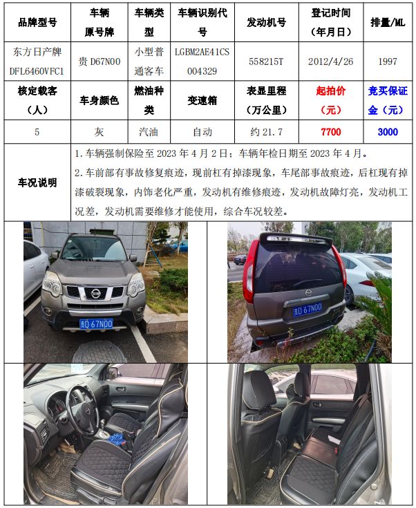 拍品編號19:三菱牌CFA2031H小型越野客車一輛、金龍牌KLQ6109E3大型普通客車一輛、江鈴全順牌JX6466DF-M小型普通客車一輛、東方日產牌DFL6460VFC1小型普通客車一輛