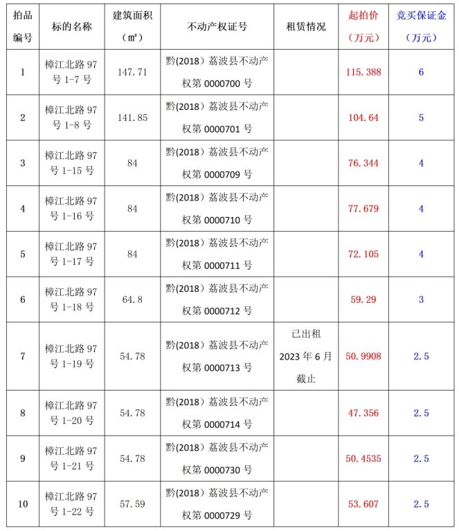 受委托,我公司定于2023年5月31日(星期三)下午14:30在貴州省黔南布依族苗族自治州荔波縣玉屏街道樟江園廣場西側-荔波農商銀行410會議室(荔波縣樟江西路與吉祥路交叉口)公開拍賣以下標的: