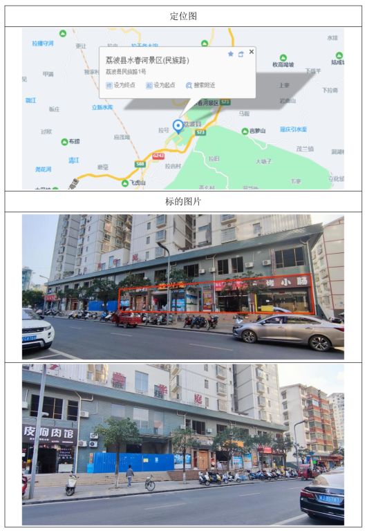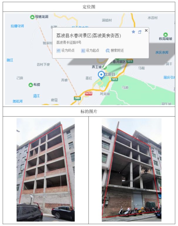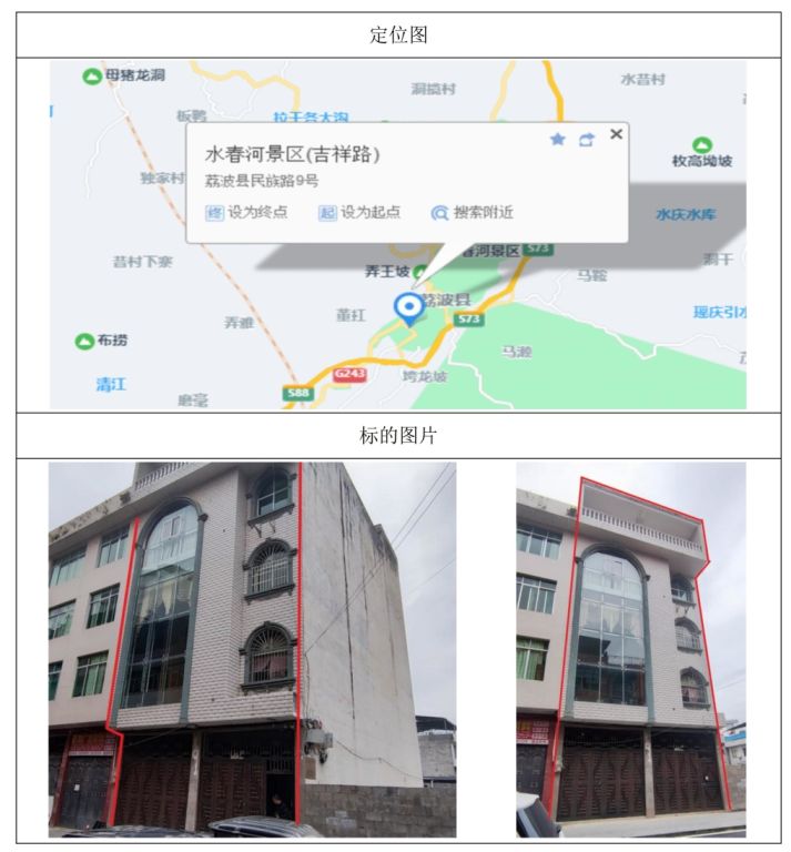標的位于玉屏鎮民族路2號,房屋建筑面積:907.75㎡,產權完整,2011年建成,房屋總層數為14層,標的所在層數為1層。不動產權證號:黔房權證荔波縣字第201300496號,土地所有權類型:出讓;土地所有權規劃用途:商業用房,建筑結構為鋼混結構。